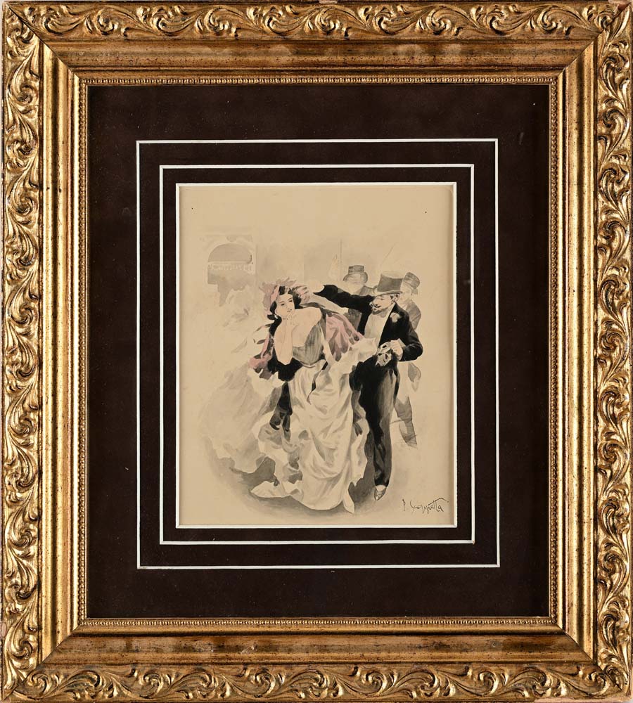 Pietro Scoppetta Amalfi 1863 - Napoli 1920 Al ballo Firmato in basso a destra: 'P. Scoppetta'. Acquarello su cartoncino cm 20 x 16 - in cornice cm 41 x 37