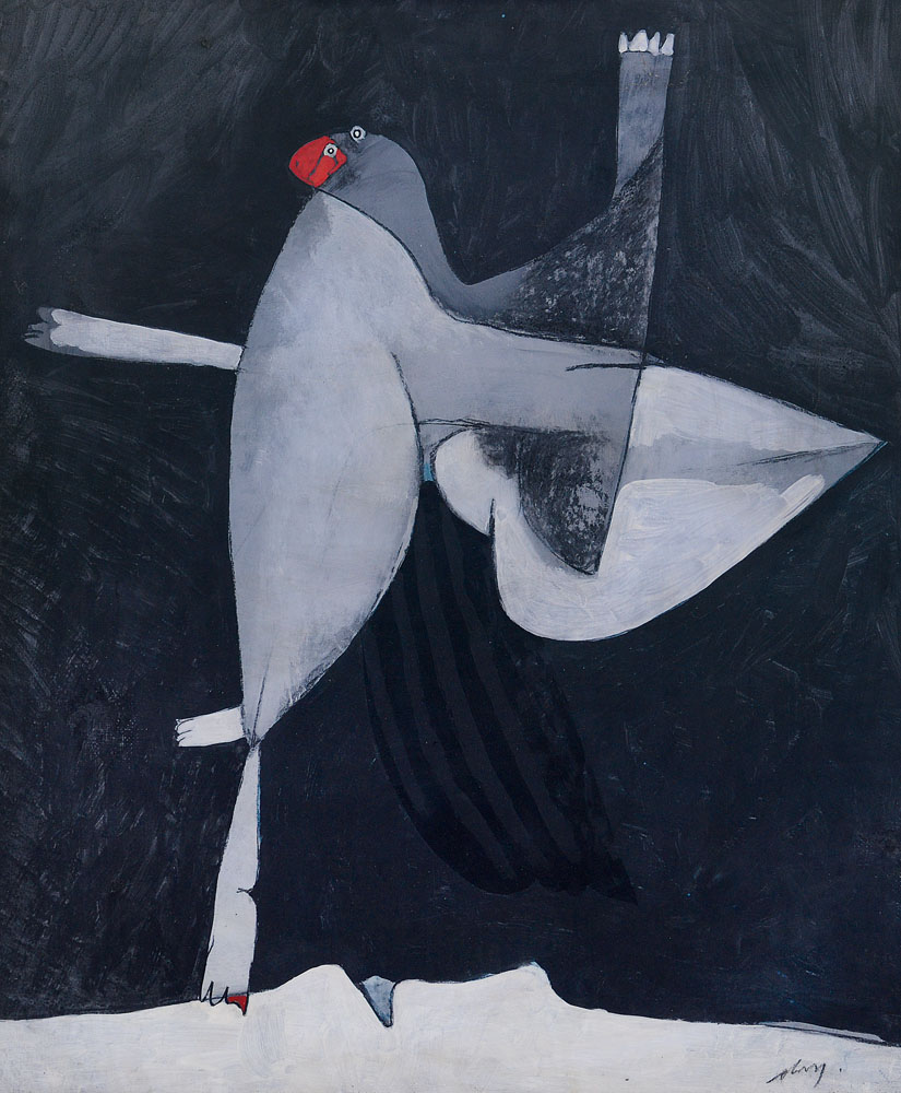 tempera su carta intelata cm. 77x64, firma in basso a destra.