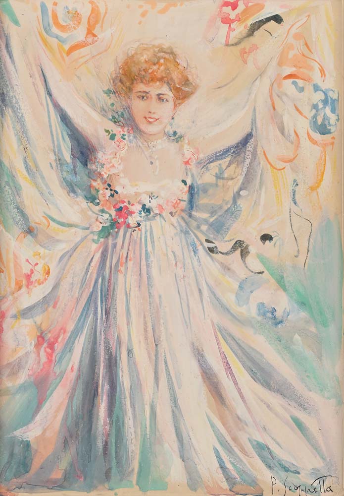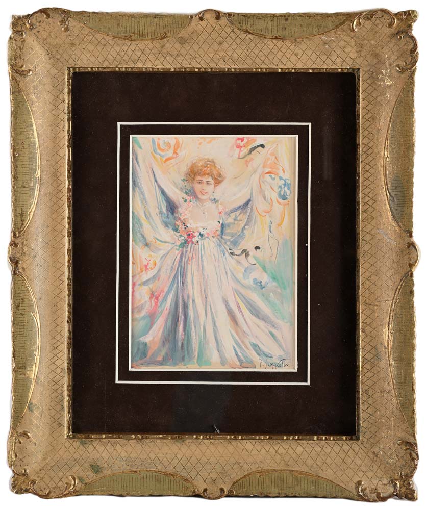 Pietro Scoppetta Amalfi 1863 - Napoli 1920 La primavera Firmato in basso a destra: 'P. Scoppetta'. Tecnica mista su cartoncino cm 18 x 13 - in cornice cm 36,5 x 30,5