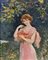 Pietro Scoppetta Amalfi 1863 - Napoli 1920 Una tira l'altra (giovane donna con cesto di ciliegie) Firmato in basso a destra: 'P. Scoppetta'. Acquerello su cartoncino cm 16,8 x 13,2 - in cornice cm 35 x 31
