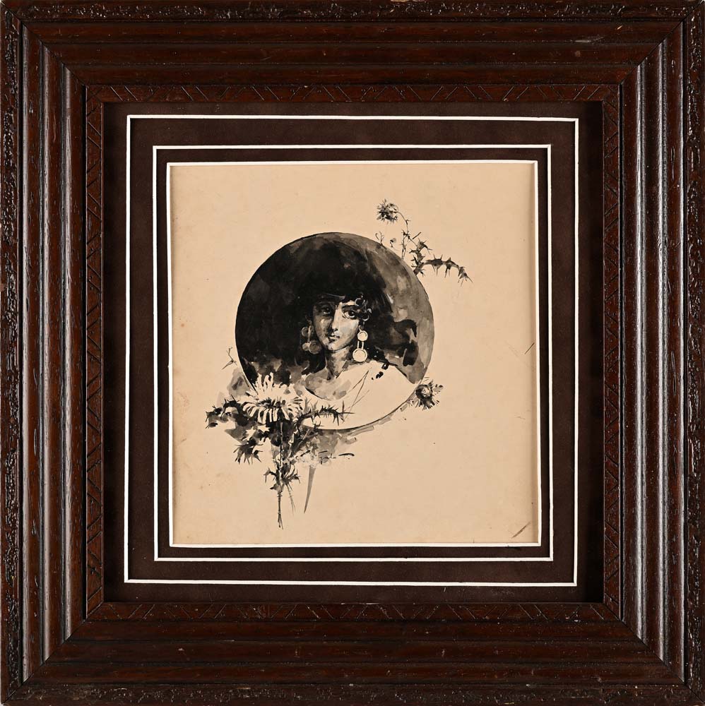 Si tratta di una tavola per la versione illustrata italiana della ‘Salomè’ di Oscar Wilde, edita dalla Libreria Editrice Bideri di Napoli nel 1907. Acquerello e biacca su cartoncino cm 21,5 x 22,5 - in cornice cm 41 x 41
