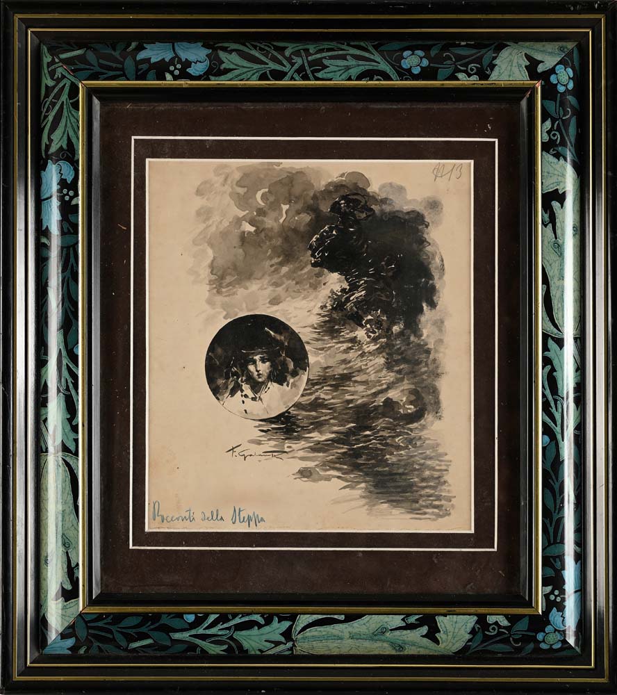 Francesco Galante Santa Margherita Di Savoia 1884 - Napoli 1972 Tavola per illustrazione di ‘Racconti della Steppa’ (N. 13) Firmato in basso verso sinistra: 'F. Galante', intitolato e numerato (n. 13).
