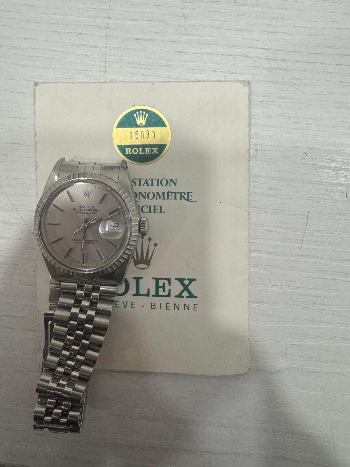 Marca Rolex Modello (Orologio) Datejust 36 Numero di referenza 16030 Carica Automatico Materiale della cassa Acciaio Materiale cinturino Acciaio Anno di produzione 1990 (Anno approssimativo) Condizione Usato (Buono) Corredo Senza scatola originale, con documenti originali Cassa Materiale della cassa Acciaio Diametro 36 mm Impermeabile 10 ATM Materiale lunetta Acciaio Vetro Plexiglas Numeri sul quadrante Senza numeri Cinturino Materiale cinturino Acciaio Colore cinturino Acciaio Chiusura Déployante Materiale chiusura Acciaio
