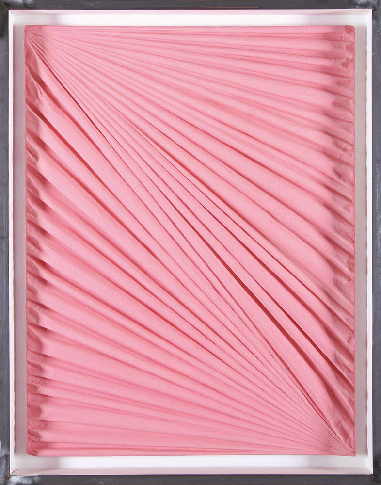 vinilico e sabbia su lamina di piombo applicata su tavola cm. 80x60; con cornice dell'artista cm. 89x69, firma, anno e titolo al retro, dichiarazione d'autenticità dell'artista su foto.