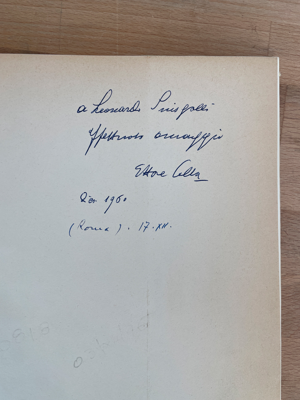 Reca dedica firmata e datata (1960) dall'Artista a biro blu all'interno