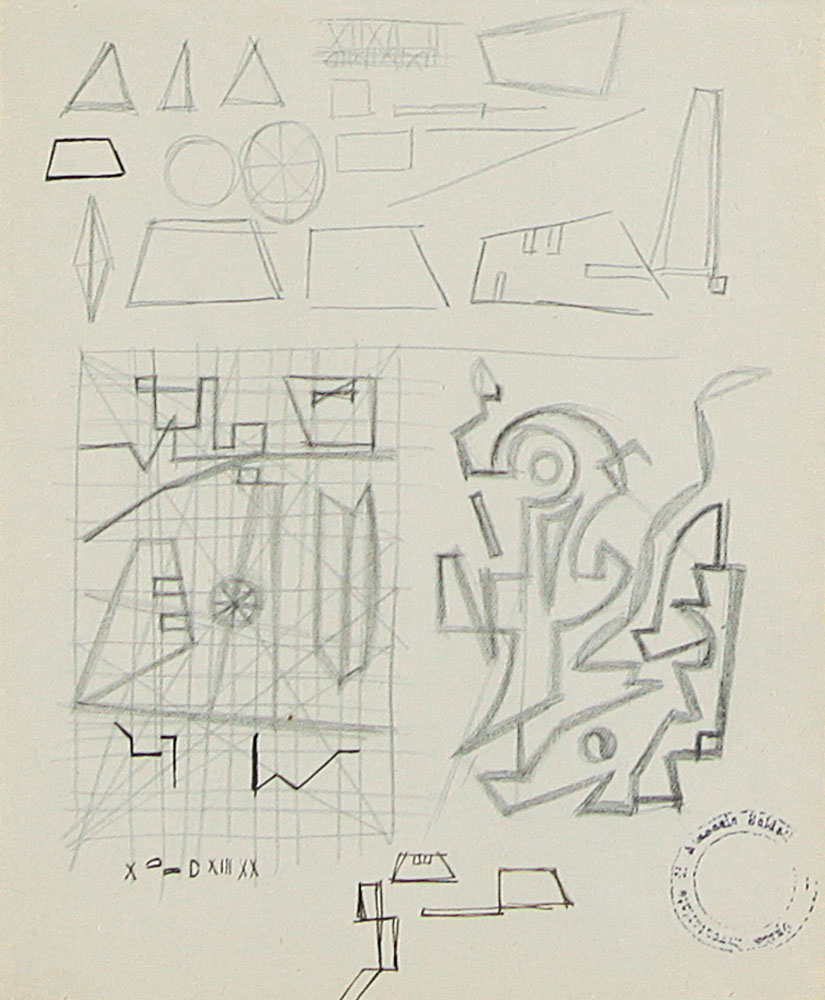 matita e penna su carta cm. 22,8x18, timbro delle Opere Inventariate di Atanasio Soldati in basso a destra, n° MZ6 003 e timbri degli Eredi Garau, archivio storico dell'opera di Atanasio Soldati e della Provenienza Raccolta disegni di Maria Soldati, moglie di Atanasio Soldati su foto.