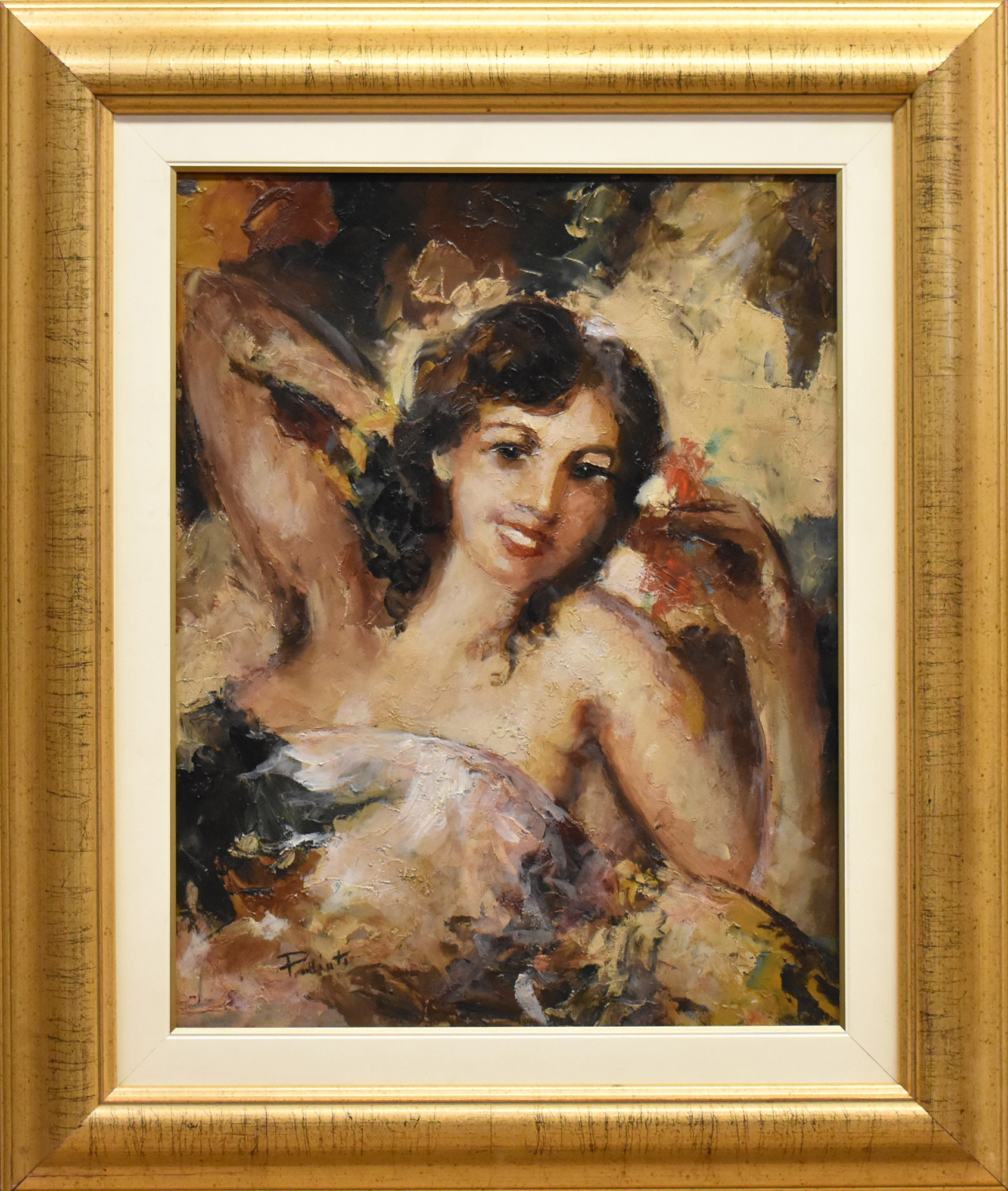 Mario Pobbiati (1887-1956) 'Giovane donna' olio su tavoletta firmato in basso a sinistra