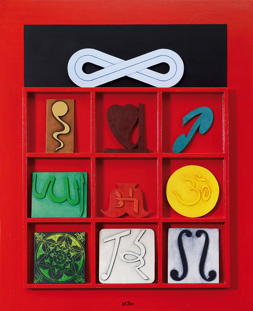 DEL PEZZO LUCIO Napoli 1933Casellario con segno dell'infinitocollage, colore...