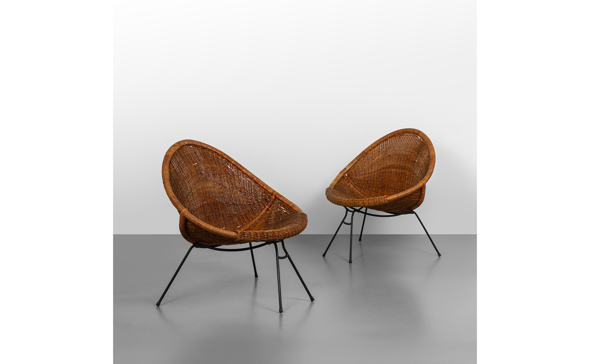 Strutture in tondino di acciaio verniciato midollino canna d'India.