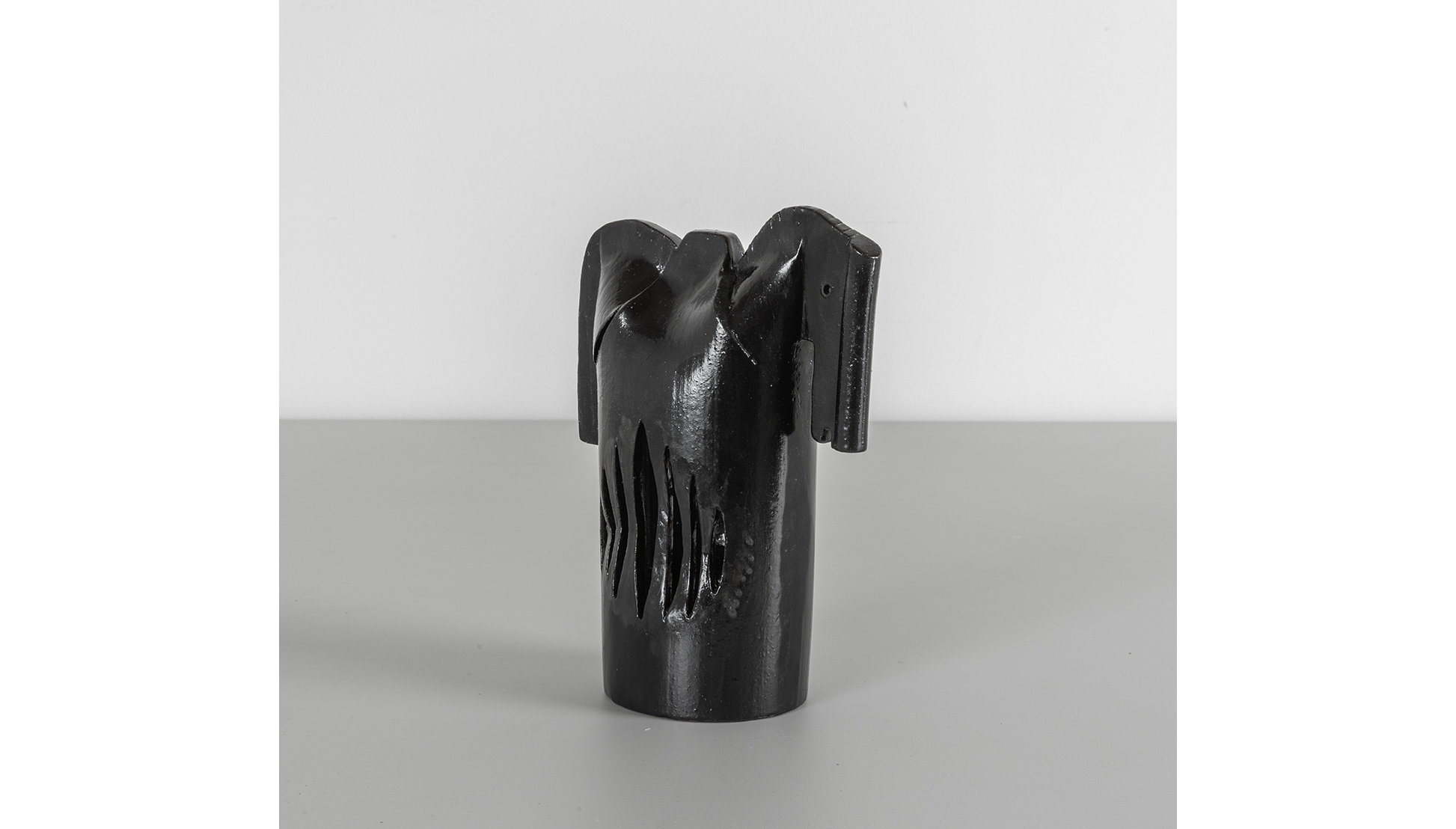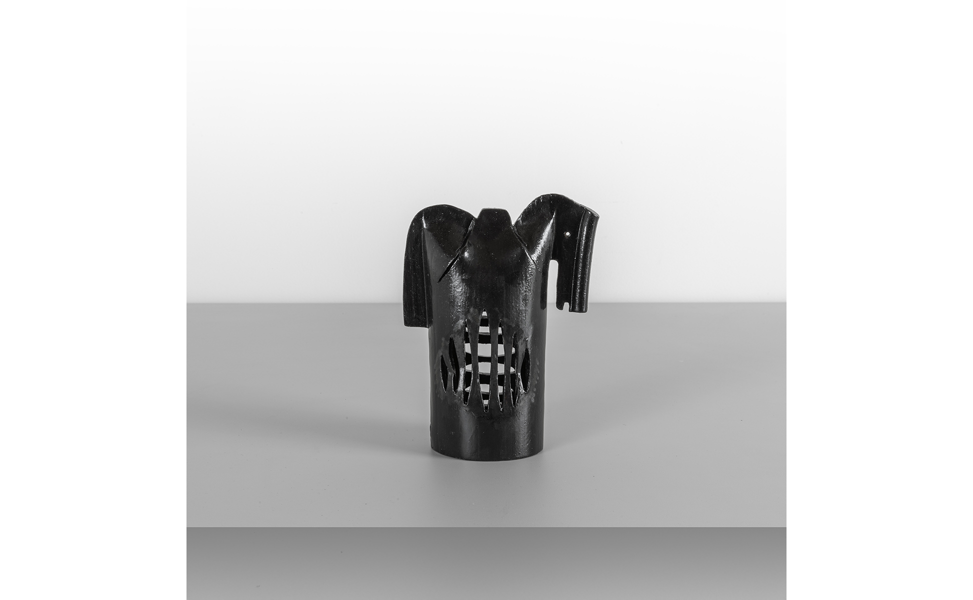 Scultura di figura di cavallo stilizzata in terracotta smaltata.