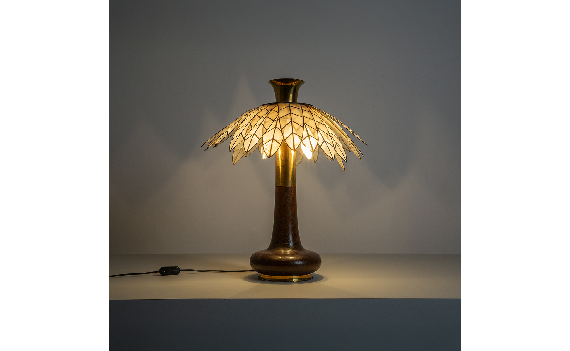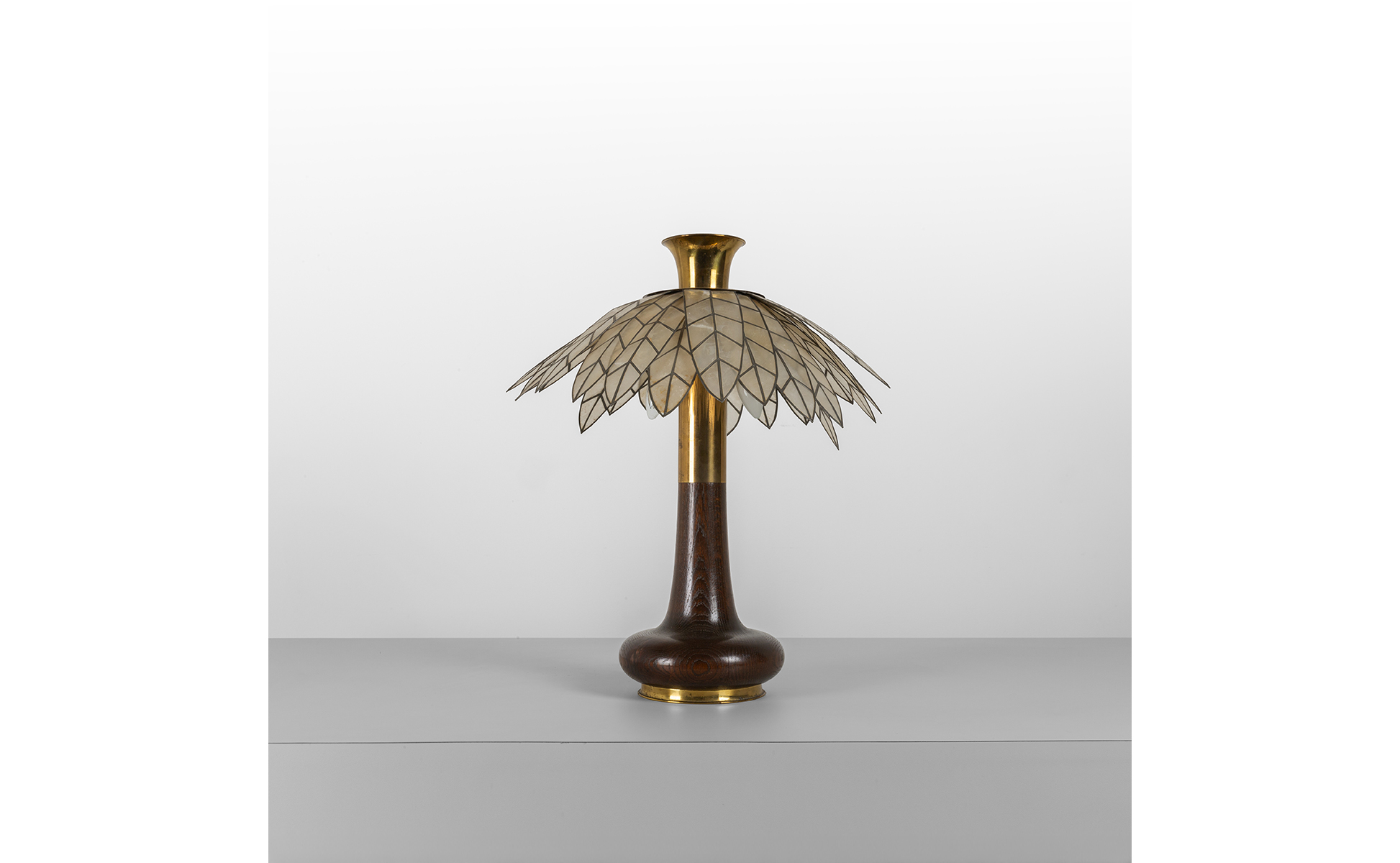 Legno tornito ottone diffusore realizzato con foglie stilizzate in stagno e madreperla.