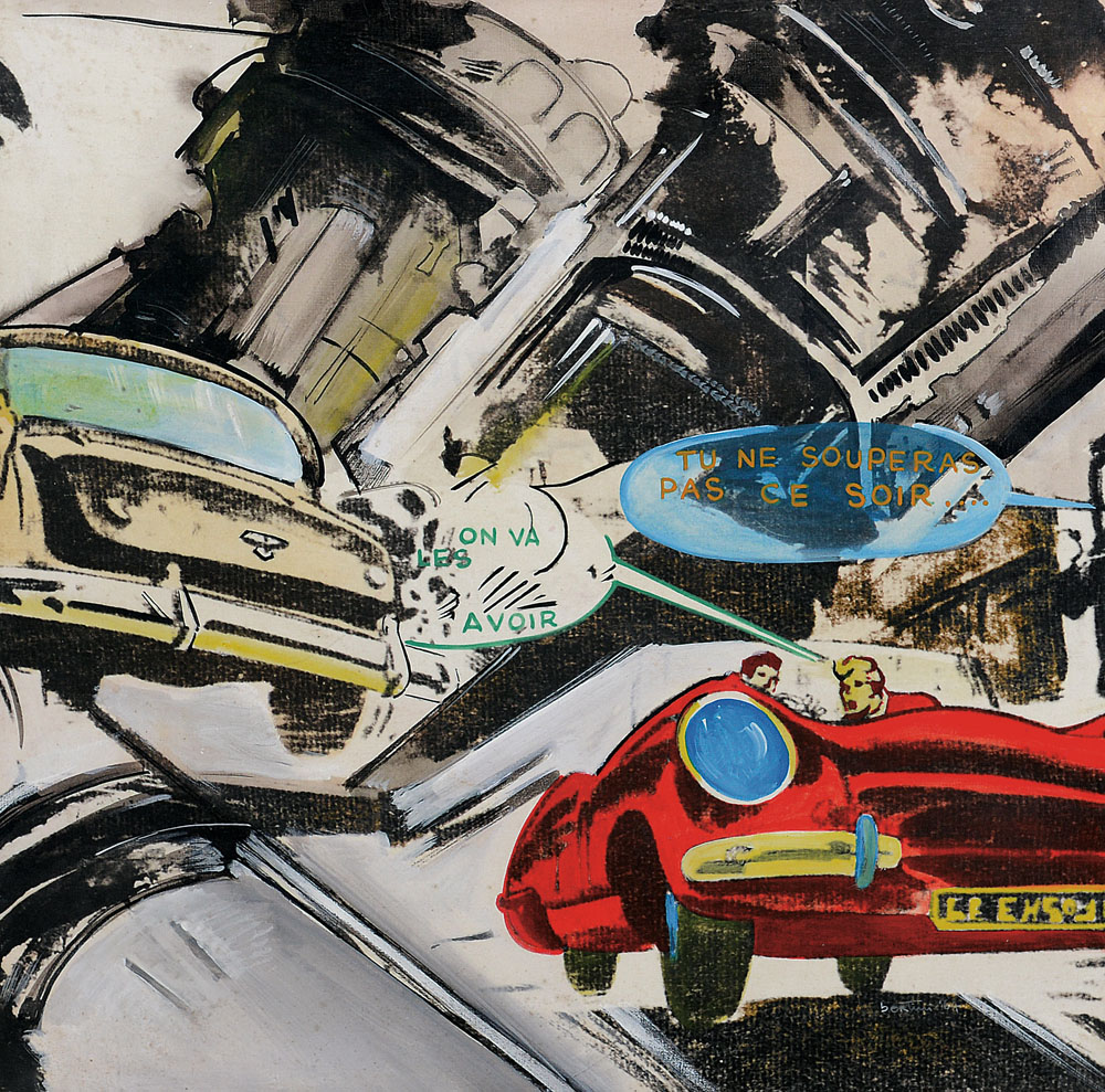 tecnica mista e riporto fotografico su tela emulsionata cm. 70x70, firma, titolo, anno ed etichetta dell'Archivio Gianni Bertini al retro.