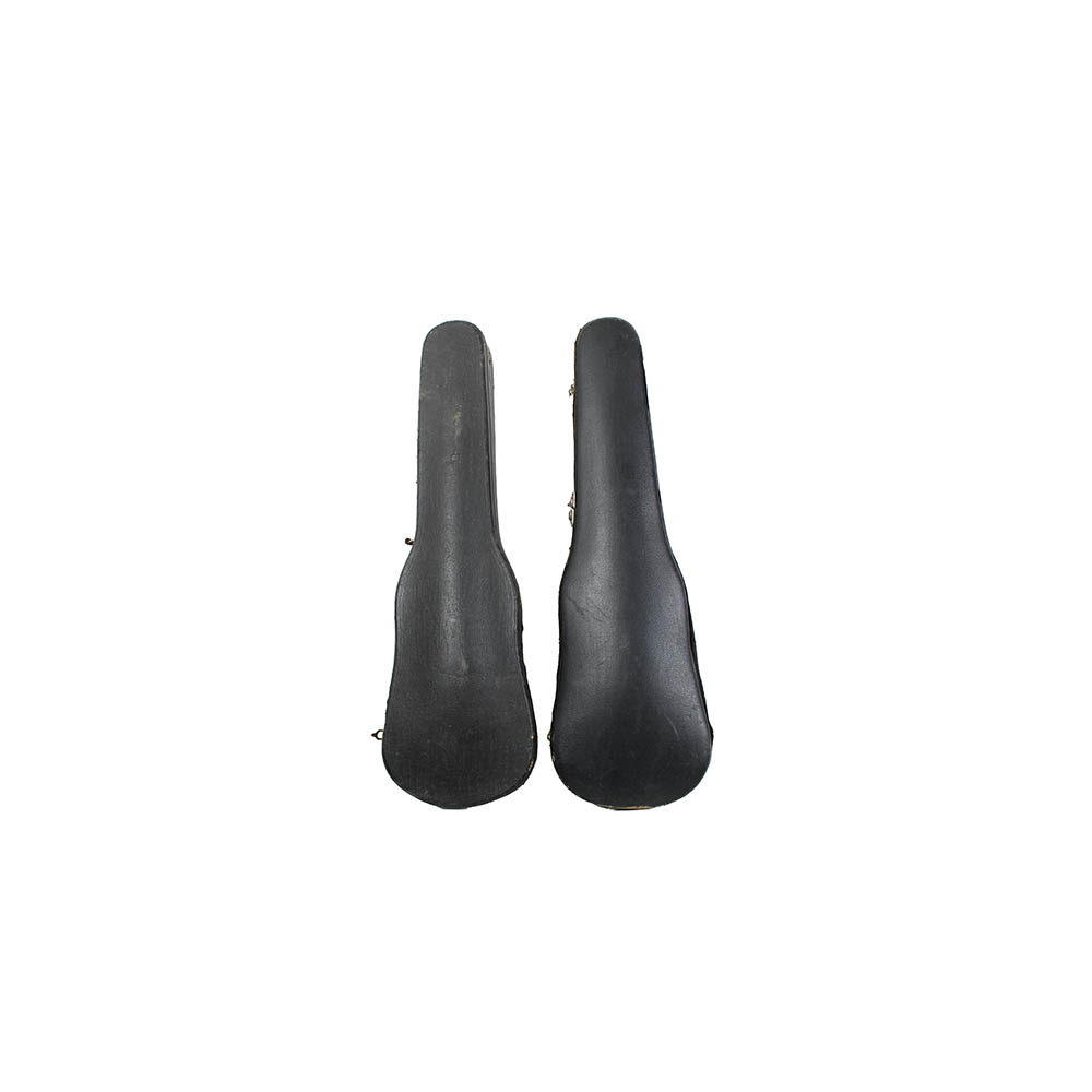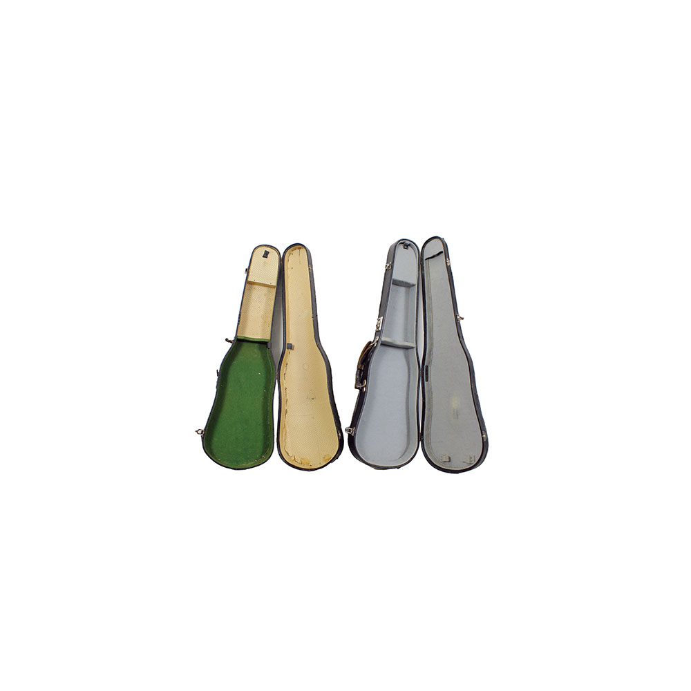 DUE CUSTODIE PER VIOLINO rivestite in pelle nera h cm 78 x 23,5 x 10 / h cm 78 x 24,5 x 10