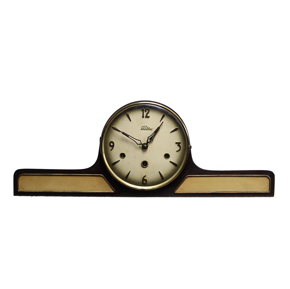 OROLOGIO D'APPOGGIO con cassa in noce Lauffer , da revisionare, un pendolo mancante. Germania XX secolo h cm 21 x 56 x 17