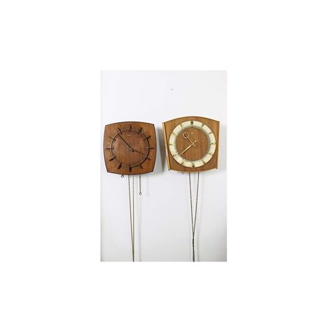 DUE OROLOGI con cassa in noce di cui uno BUT ed uno PERFECTA , da revisionare, pesi mancanti. Europa del Nord XX secolo h cm 28 x 28 x 10 / h cm 29 x 30 x 10