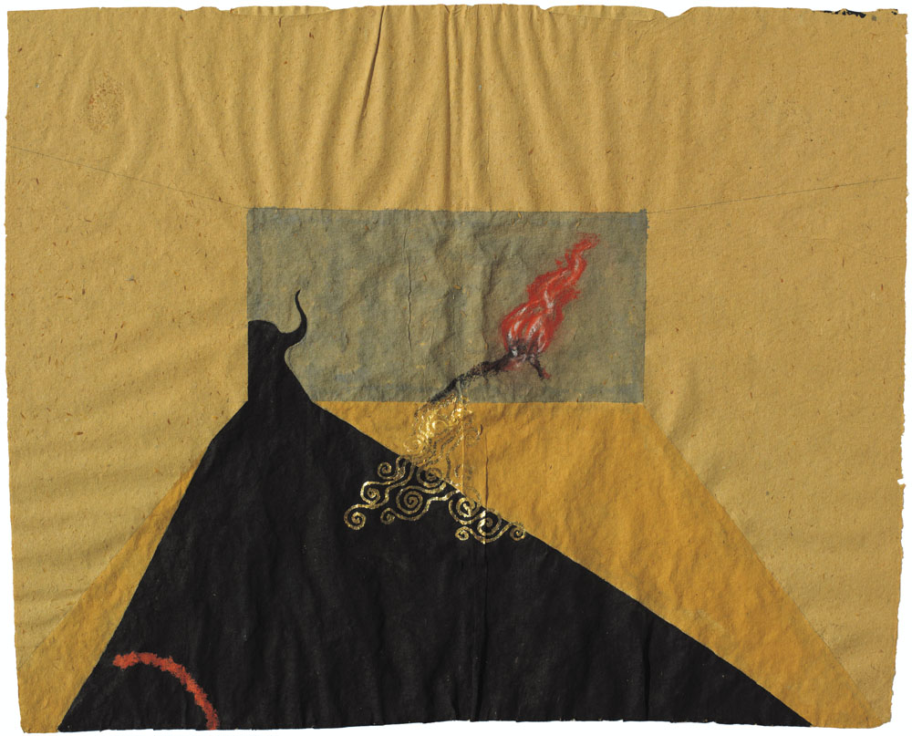 tecnica mista e collage su carta a mano cm. 45x55, firma e anno al retro, conferma d'autenticità via e-mail dell'archivio Bartolini allegata.