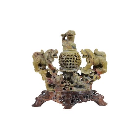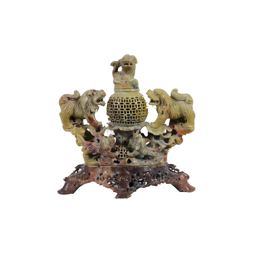 BRUCIA PROFUMO in marmi diversi raffiguranti cani Fo manifattura Orientale XIX/XX secolo h cm 26 x 26 x 6