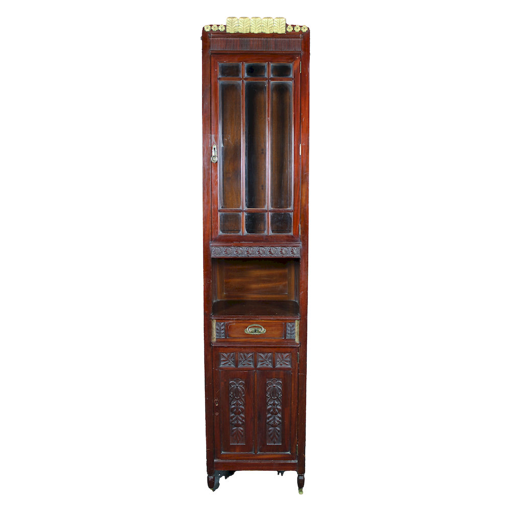 PICCOLA VETRINA AD 1 ANTA in legno di mogano di gusto Art Nouveau con applicazioni in bronzo dorato e vetri molati Francia primi 900 h cm 21 x 45 x 33