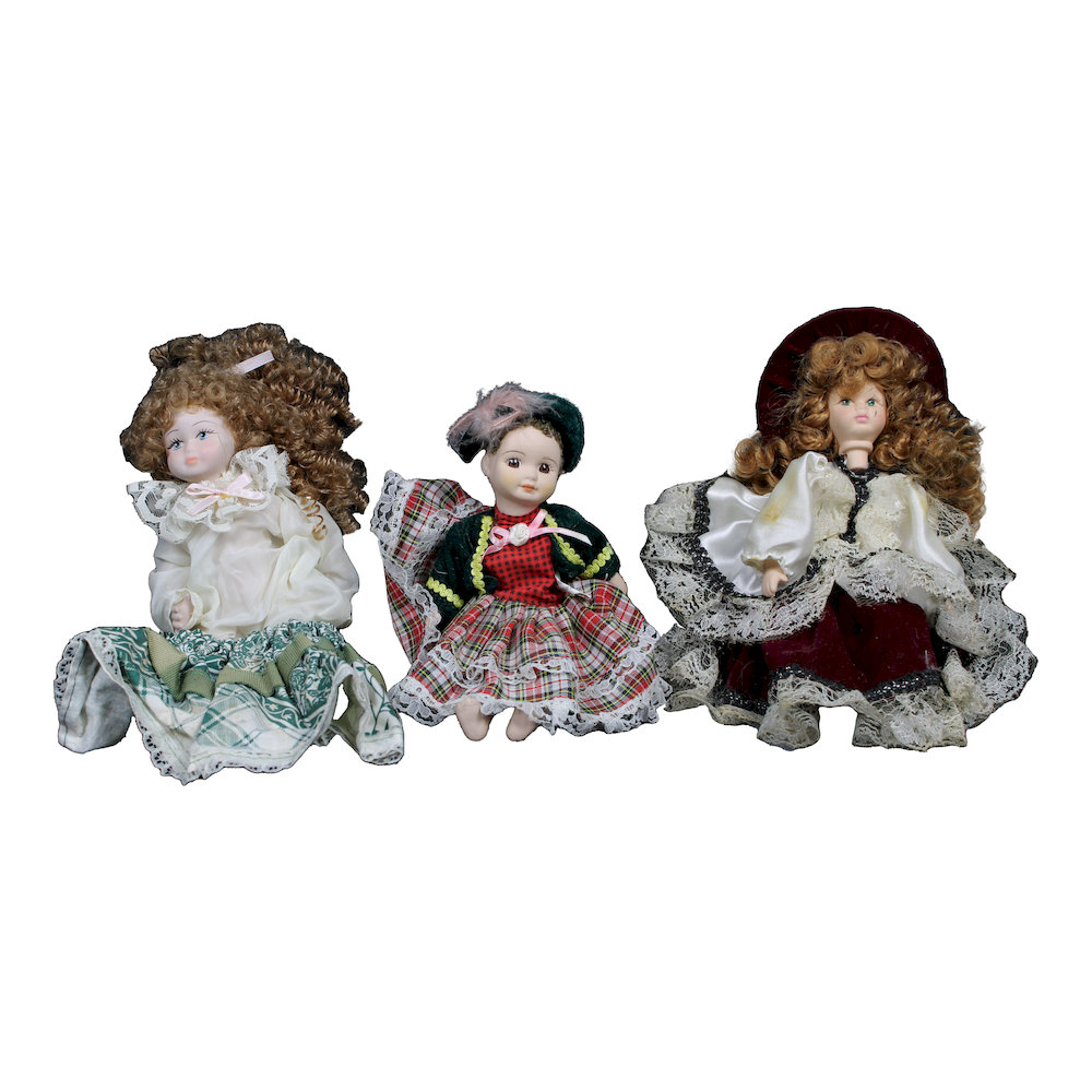 LOTTO COMPOSTO DA 5 bambole in porcellana e abiti in tessuto di cui 1 marca Litardi , parte mancante in una bambola varie provenienze XX secolo misure varie