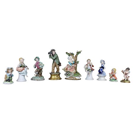 LOTTO COMPOSTO DA 9 sculture in porcellana policroma raffigurante personaggi diverse manifatture tra cui Capodimonte XX secolo misure varie
