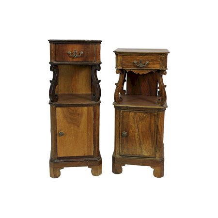 2 COMODINI in legno di noce Sicilia XX secolo h cm 100 x 37 x 33 / h cm 92 x 39 x 33