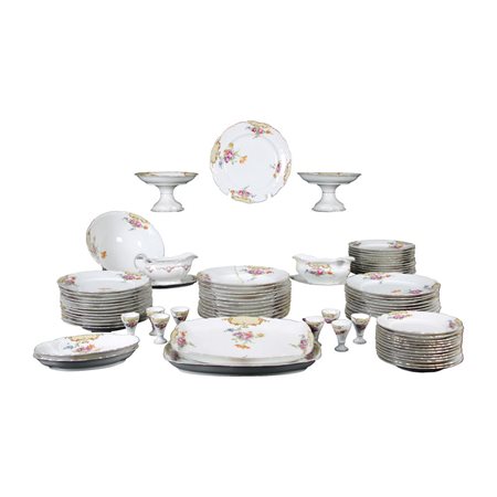SERVIZIO DI PIATTI in porcellana 81 pezzi, dipinto a motivi floreali manifattura Epiag D.F Cecoslovacchia misure varie