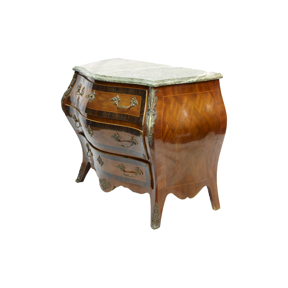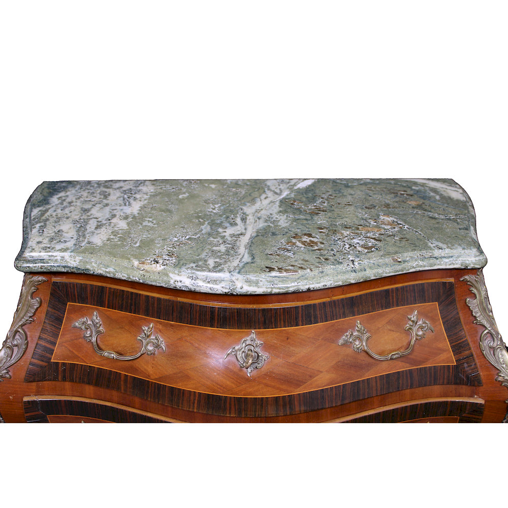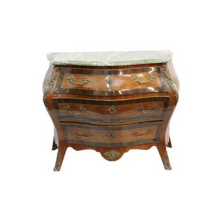 CASSETTONCINO SVEDESE DI GUSTO LUIGI XV a tre cassetti con applicazioni in bronzo piano in marmo breccia verde Svezia fine XIX secolo h cm 81 x 95,5 x 60