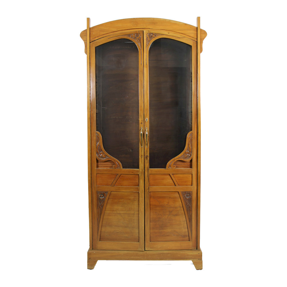 VETRINA LIBERTY A DUE ANTE in legno di noce scolpita a motivi floreali maestranze siciliane primi 900 h cm 223 x 104 x 41