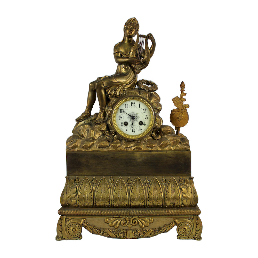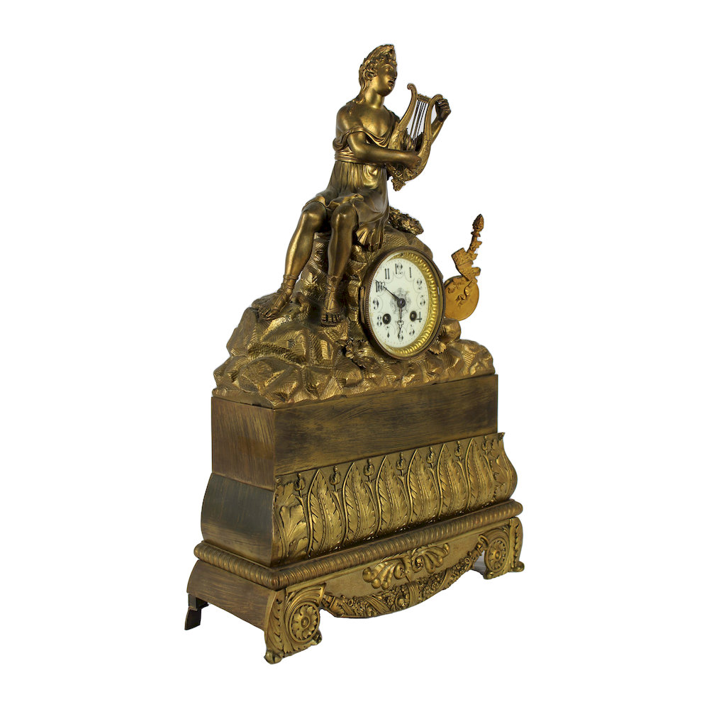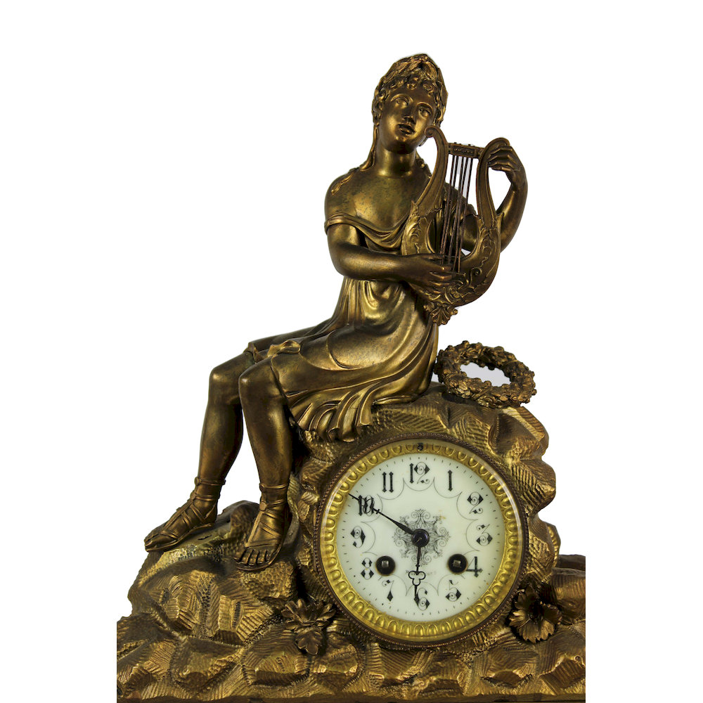 OROLOGIO PARIGINA in bronzo dorato raffigurante Apollo con la Cetra Francia XIX secolo h cm 57 x 36 x 12