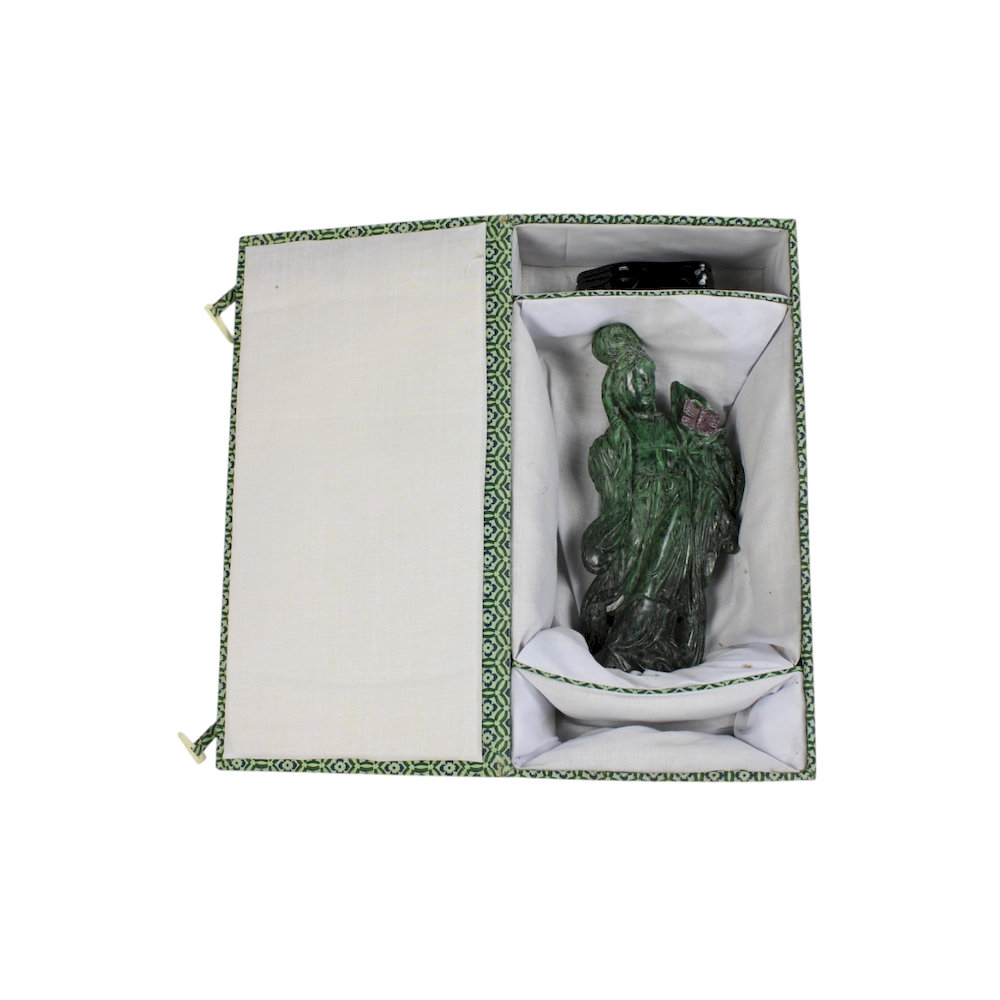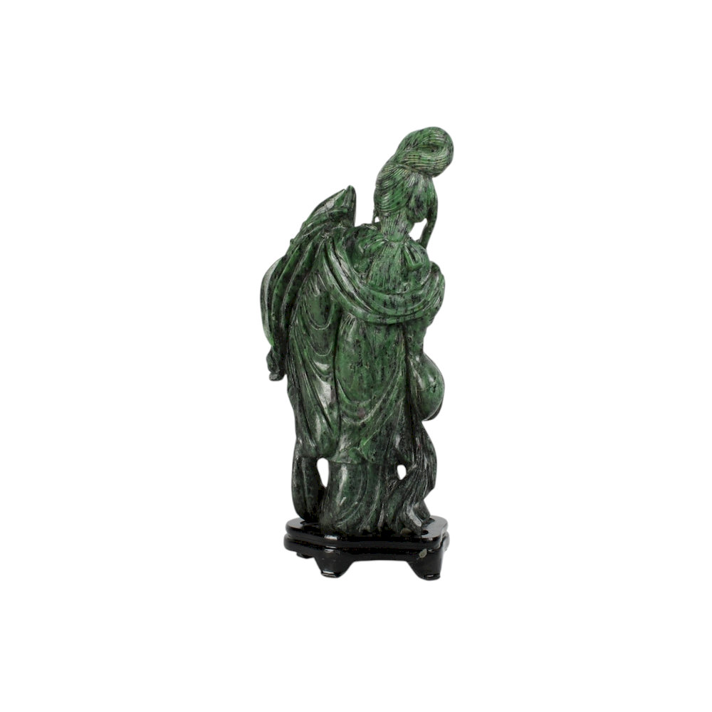 SCULTURA in corniola raffigurante geisha con base in legno manifattura orientale XX secolo h cm 27 x 11 x 9
