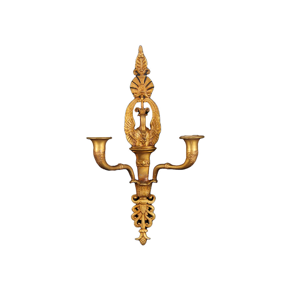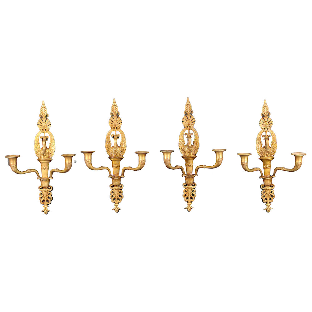 4 APPLIQUES in bronzo finemente cesellato e dorato a 2 fiamme raffigurante cigno manifattura italiana XIX - XX secolo h cm 41,5 x 23,5 x 13,5