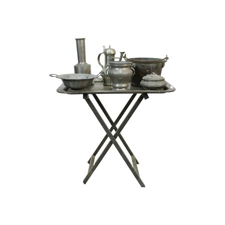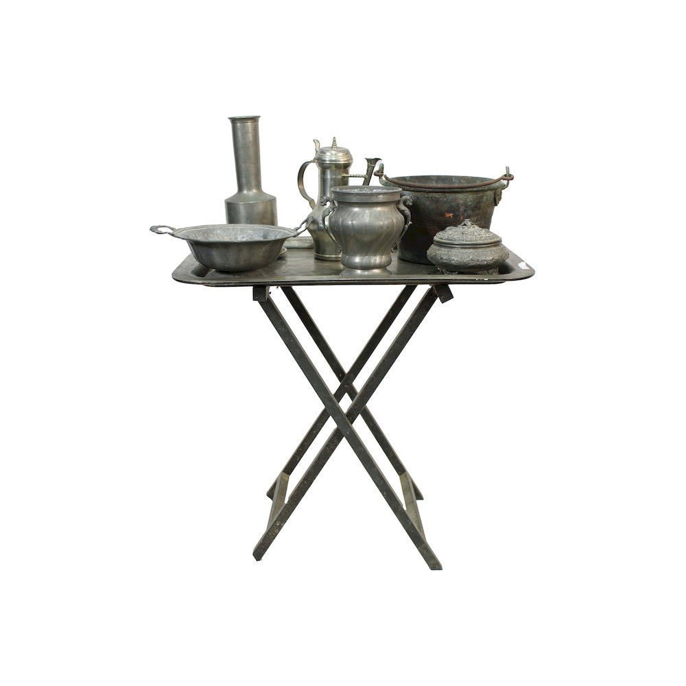 LOTTO COMPOSTO DA 1 vassoio con piedistallo in metallo e 12 oggetti diversi materiali forme e usi Sicilia primi 900 h cm 64,5 x 65,5 x 44 e misure varie