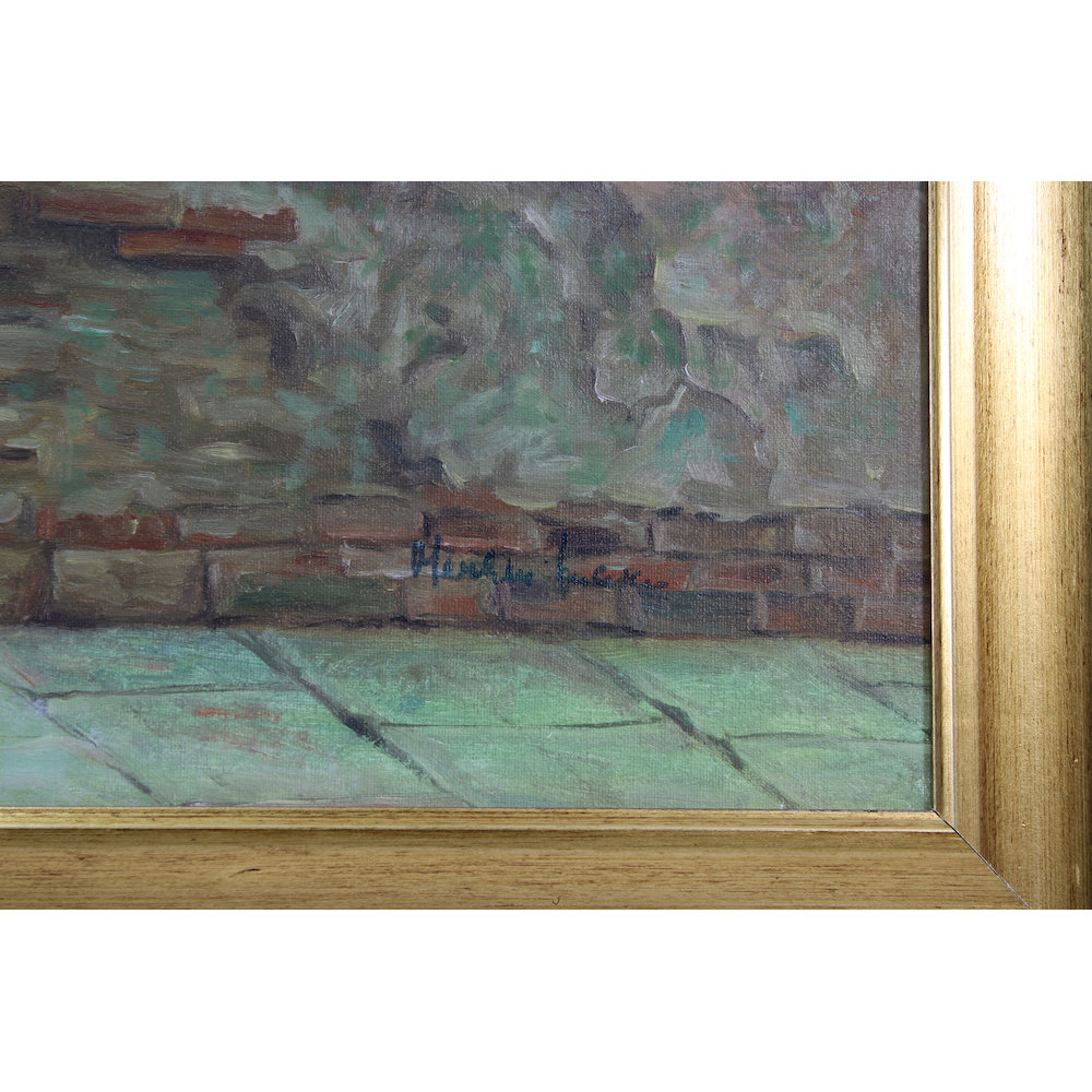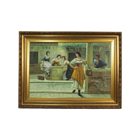 OLIO SU TELA raffigurante scene di vita con gitane accademia belle arti di Londra dentro cornice in legno dorato Inghilterra XX secolo h cm 56 x 86 / cornice h cm 89 x 118