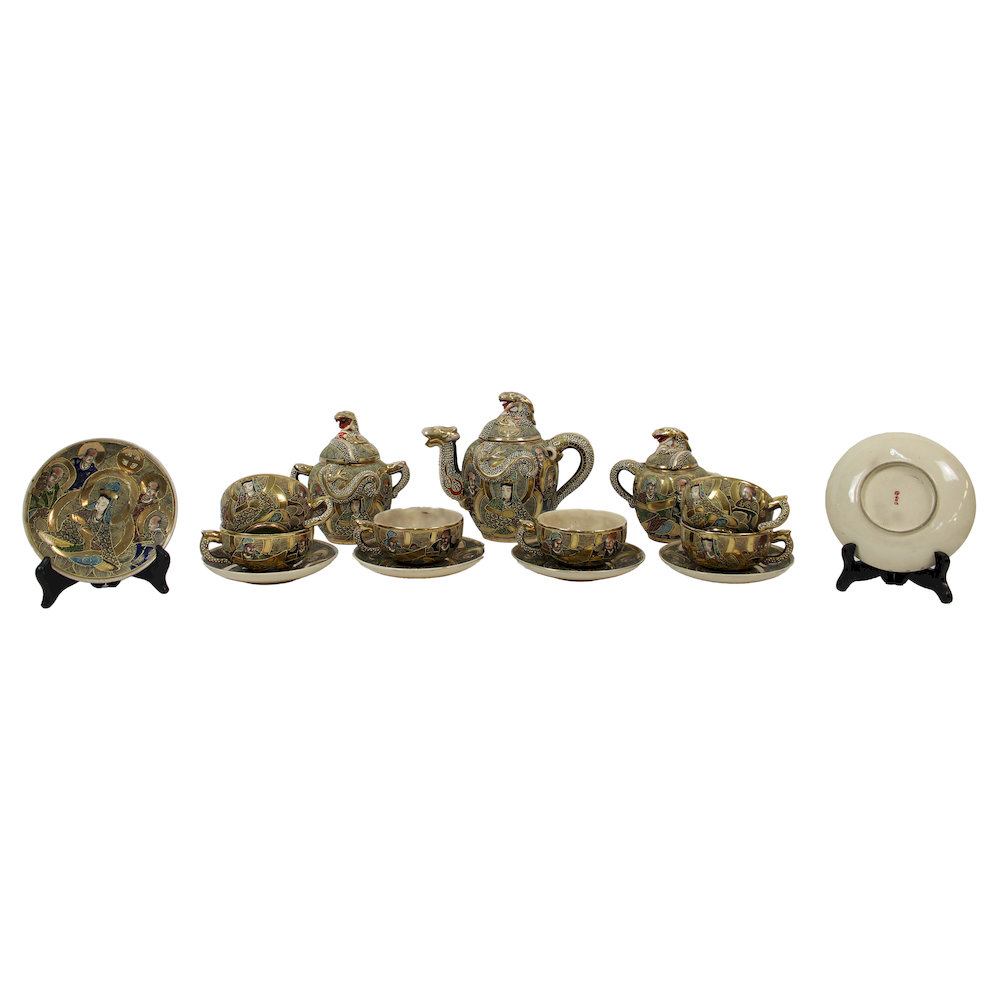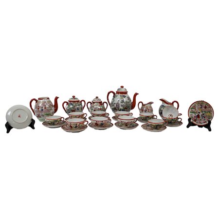 LOTTO COMPOSTO DA 2 servizi in porcellana policroma, sbeccate e incollaggio, manca una tazzina manifattura orientale primi 900 misure varie