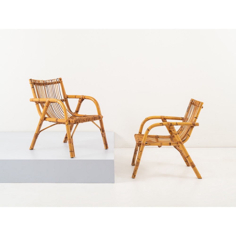 Coppia di poltrone in canna di bamboo curvata, lievi difetti.