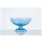 Alzata in vetro soffiato incolore e decorato con filigrana celeste e blu, coppa semisferica su piede a base circolare a campana rovescia.