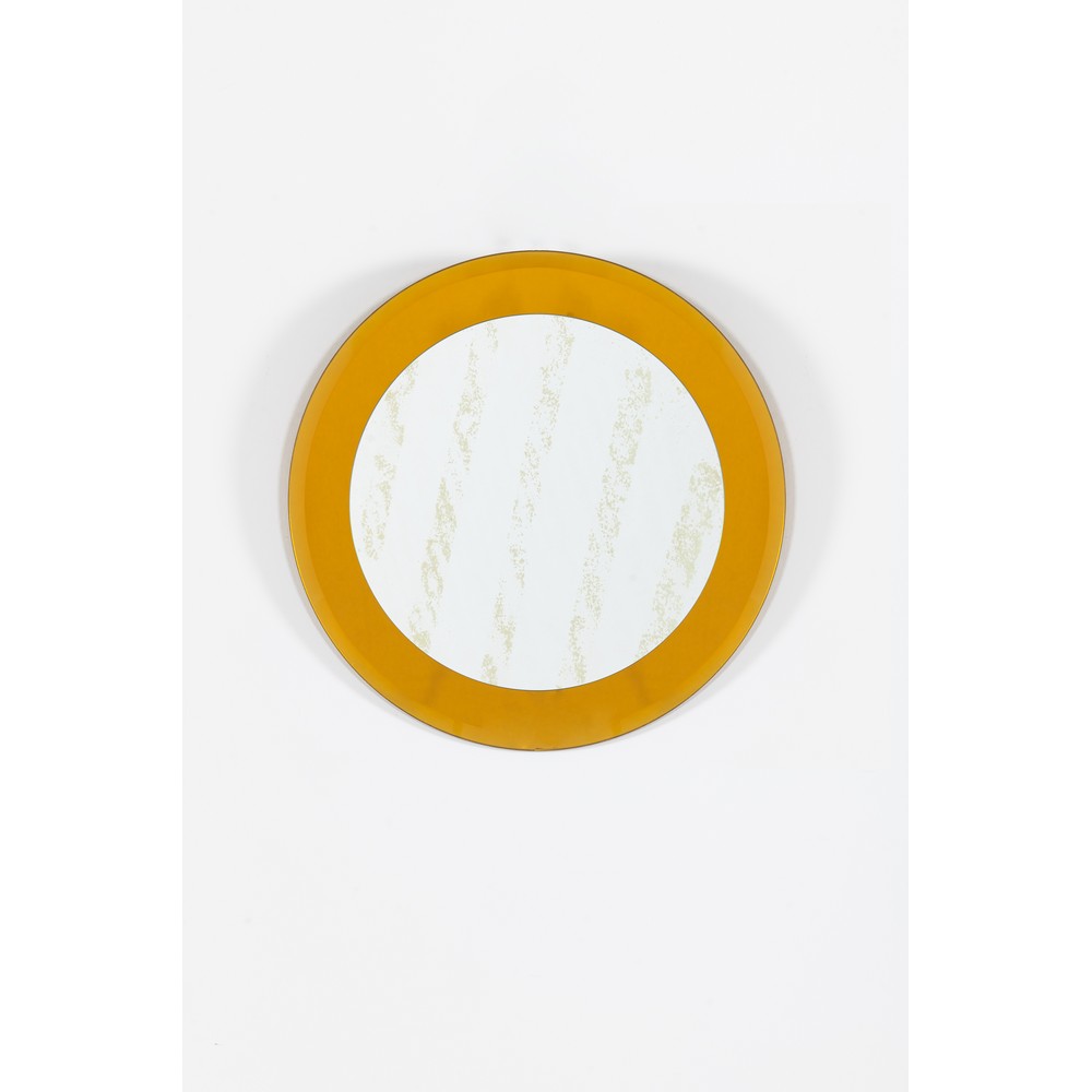 Specchio da parete circolare con cornice in vetro giallo trasparente, cristallo specchiato.