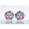 Due piatti circolari in ceramica invetriata e decorata in policromia con volti e decori geometrici. Firma e data retrostante.