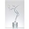 Scultura in vetro incolore “Tennista” con lavorazione manuale a caldo, racchetta in metallo argentato, base cilindrica. Firma a graffio.