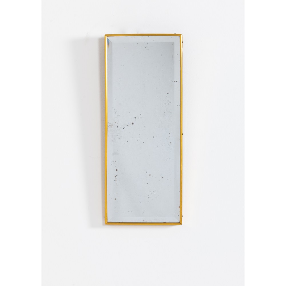 Specchio da parete rettangolare con cornice in metallo dorato, cristallo specchiato.