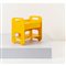 Comodino in legno laccato giallo, piano e sottopiano rettangolari, sul fronte un cassetto, fianchi sagomati. Usure e lievi difetti.