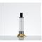 Lampada da tavolo ad una luce con struttura in metallo dorato, stelo composto da canne tortili in vetro incolore.