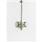 Lampada a sospensione a tre luci con struttura in metallo cromato, diffusore a dischi di vetro a degradare uno trasparente, uno fumè e uno satinato. Catena a maglie circolare. Ossidazioni.