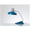 Lampada da tavolo in metallo verniciato blu, braccio in tondino metallico cromato e sagomato, diffusore orientabile circolare in alluminio verniciato crema e blu, impianto elettrico originale.