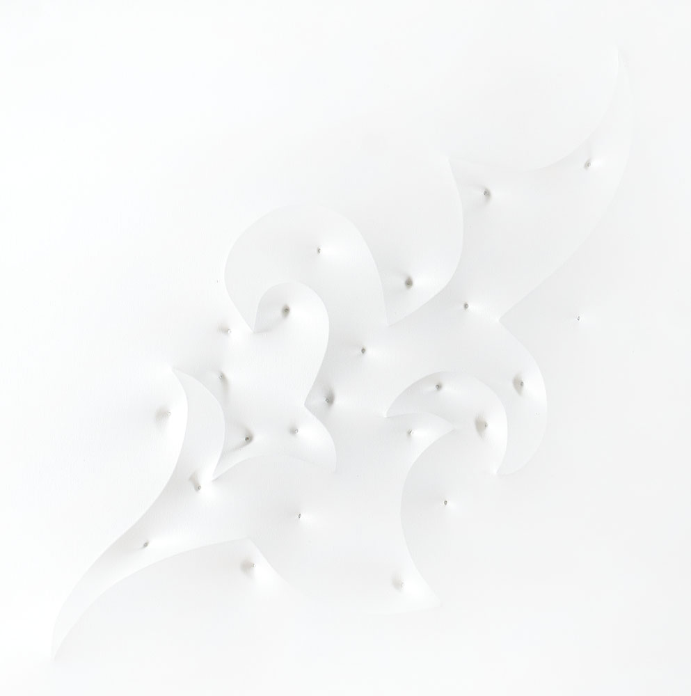 tela estroflessa bianca cm. 70x70x4, firma, titolo ed etichetta della Galleria DZ Nuovo Segno al retro, dichiarazione d'autenticità dell'artista su foto, opera priva di cornice.