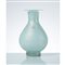 Vaso in vetro verde a inclusioni foglia oro, corpo sferico con largo collo, bocca piana circolare, base circolare. Etichetta di produzione e firma a punta "Barovier e Toso".