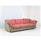 Divano a tre posti modello “Violoncello”, struttura in faggio naturale curvato, imbottitura e rivestimento in alcantara rosa e tortora, piedi e finiture in legno laccato nero.