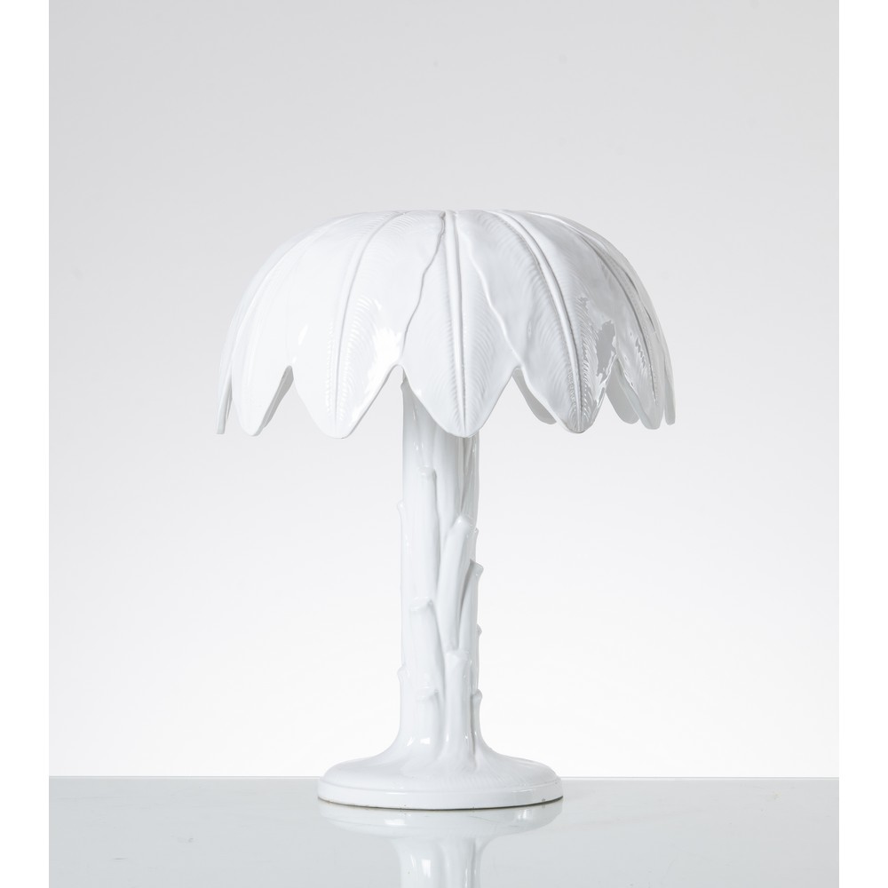 Lampada da tavolo a due luci in ceramica bianca, corpo a palma, impianto elettrico originale.