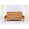 Divano modello "Lady" a tre posti, struttura in metallo con imbottitura e rivestimento in velluto originale colore beige. Piede in tubolare metallico. Segni di uso e lievi difetti.