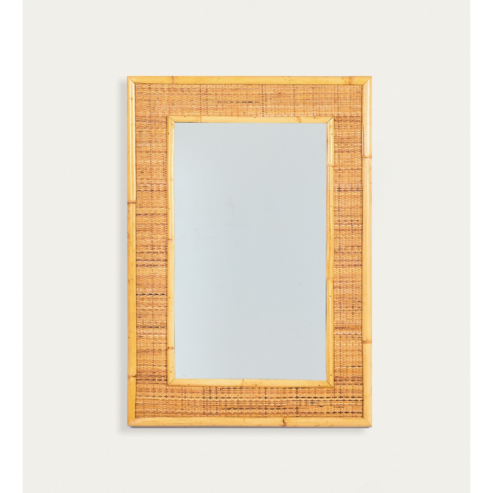 Specchio da parete rettangolare con cornice in canna di bamboo e midollino, cristallo specchiato.
